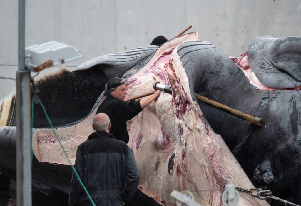 Die Anlandung eines weiblichen Finnwals in den Morgenstunden des 19. Juli hat einen weiteren Fall von fehlerhaftem Walfangequipment während der diesjährigen Jagdsaison offenbart. Einer der Wale, die vom Harpunschiff Hvalur 9 an Land gebracht wurden, erregte schnell die Aufmerksamkeit von Meeressschützern, die die Verarbeitung der großen Meeressäuger an der Walfangstation in Hvalfjörður überwachen.